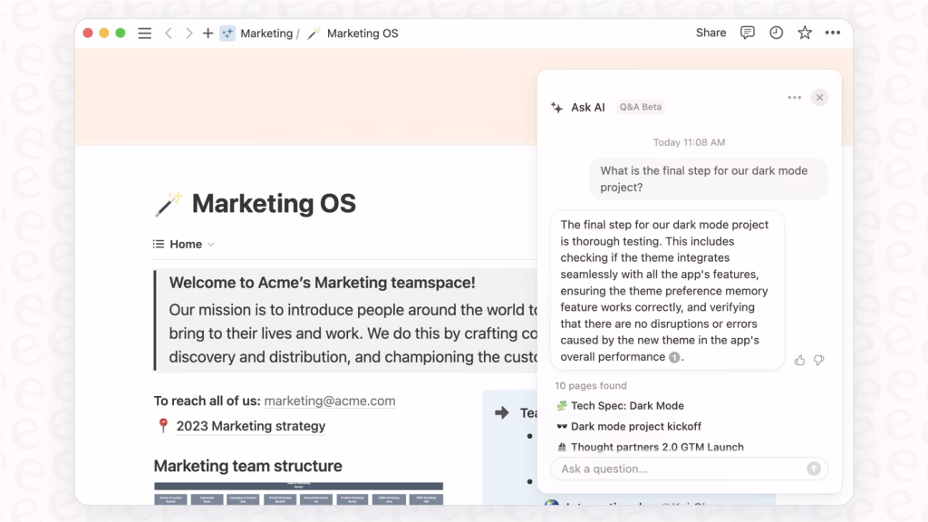 Paste raw meeting notes and ask Notion AI to extract action items. No manual cleanup. No forgotten tasks.